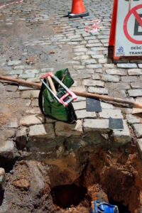 No último sábado, dia 12 de julho, a equipe operacional do DMAES realizou um importante serviço de correção de vazamento na Avenida Presidente Antônio Carlos, no Centro Histórico. A ocorrência envolveu o rompimento de um antigo cano de ferro com 110 milímetros de diâmetro, exigindo a aplicação de uma tripartida luva de vedação composta por três partes, para a contenção do vazamento. Os trabalhos começaram às 18h30 e se estenderam até as 4h30 da madrugada de domingo, somando mais de 10 horas de atuação ininterrupta.