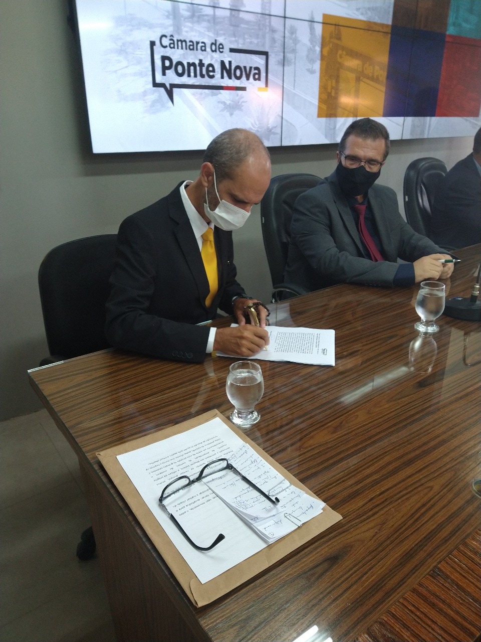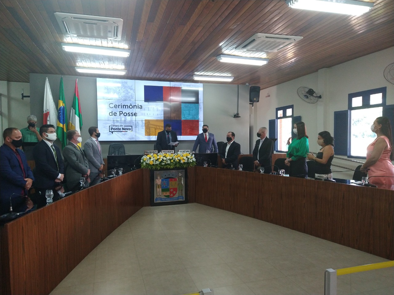 Na cerimônia de posse, comandada pelo assessor de comunicação da Câmara Municipal de Ponte Nova, Ronaldo Fernandes, doze dos treze vereadores eleitos fizeram o juramento ritualístico para o cargo e assinaram o termo de posse como manda o protocolo.