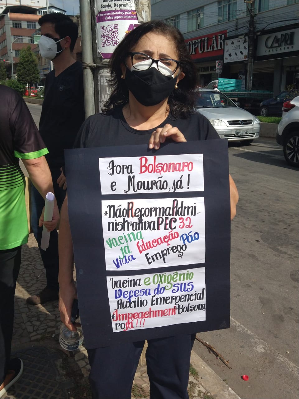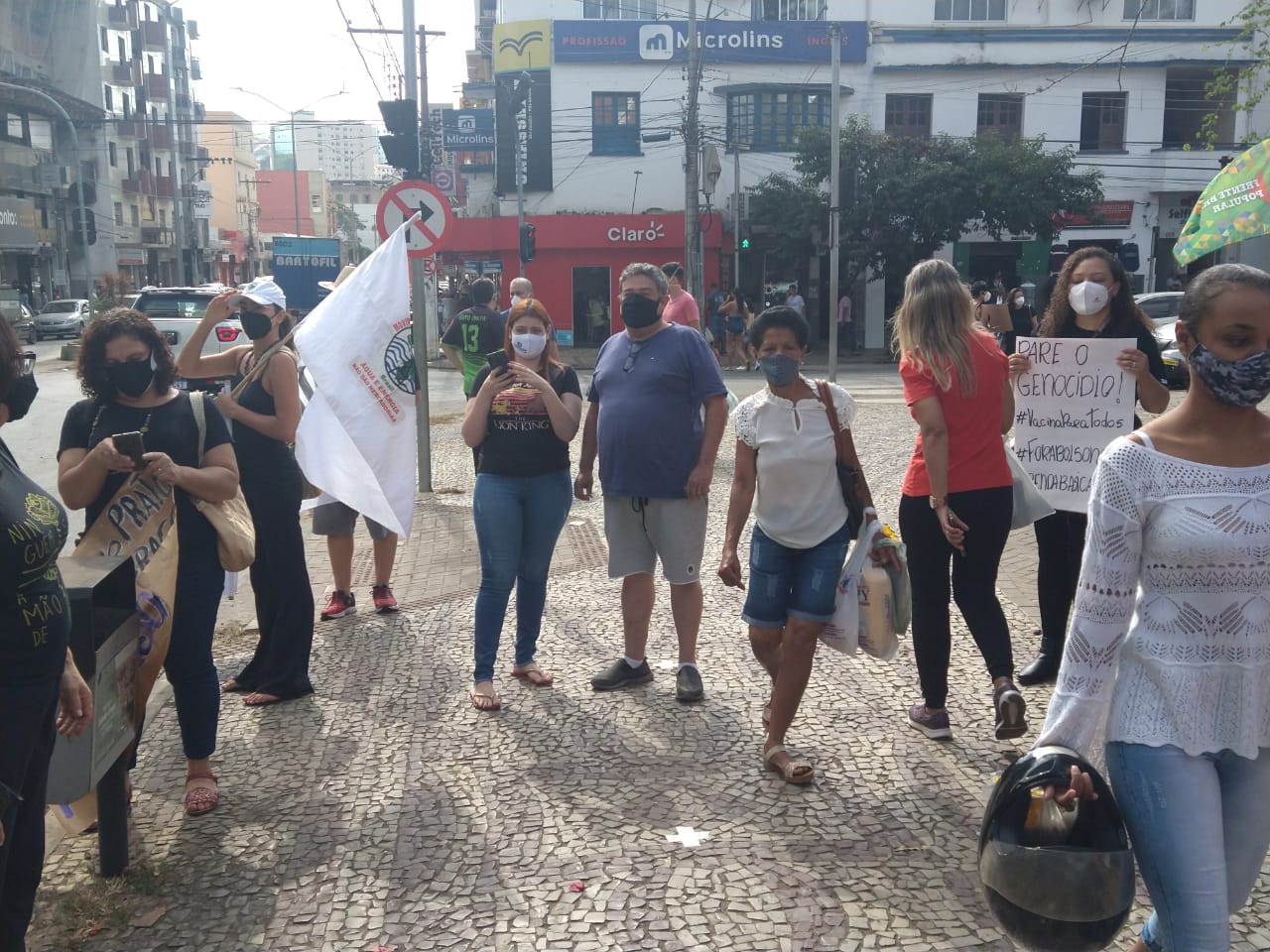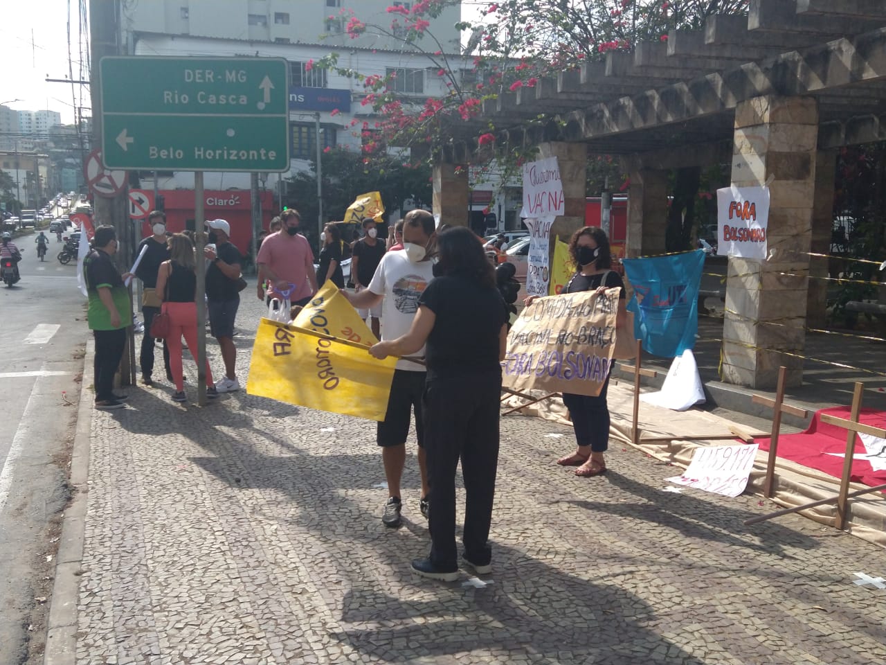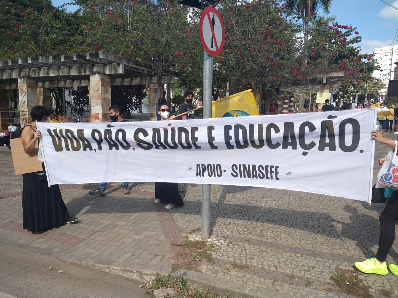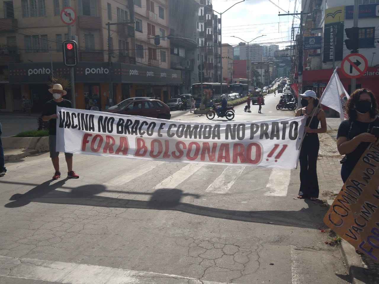 A manifestação ponte-novense, como as outras registradas ao redor do país, traziam cartazes e palavras de ordem como: “fora Bolsonaro genocida”, “o governo é mais perigoso que o vírus”, “comida no prato, vacina no braço”.