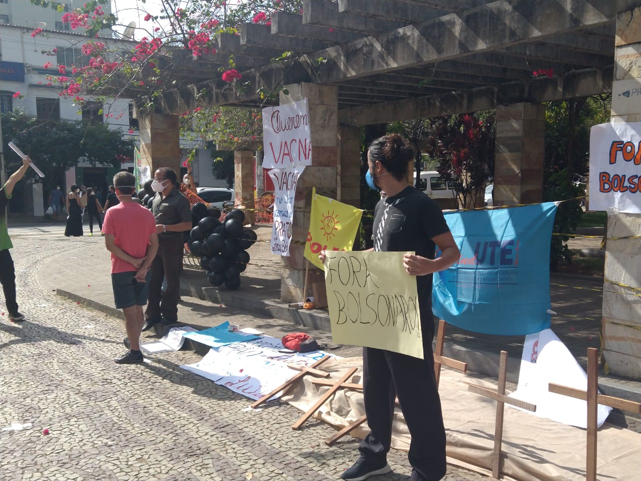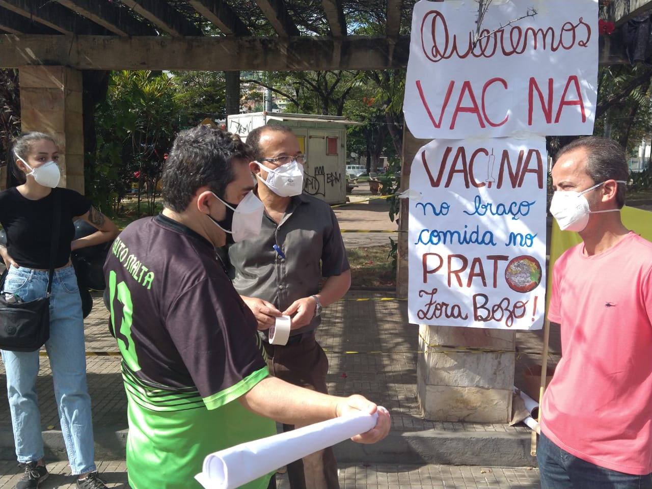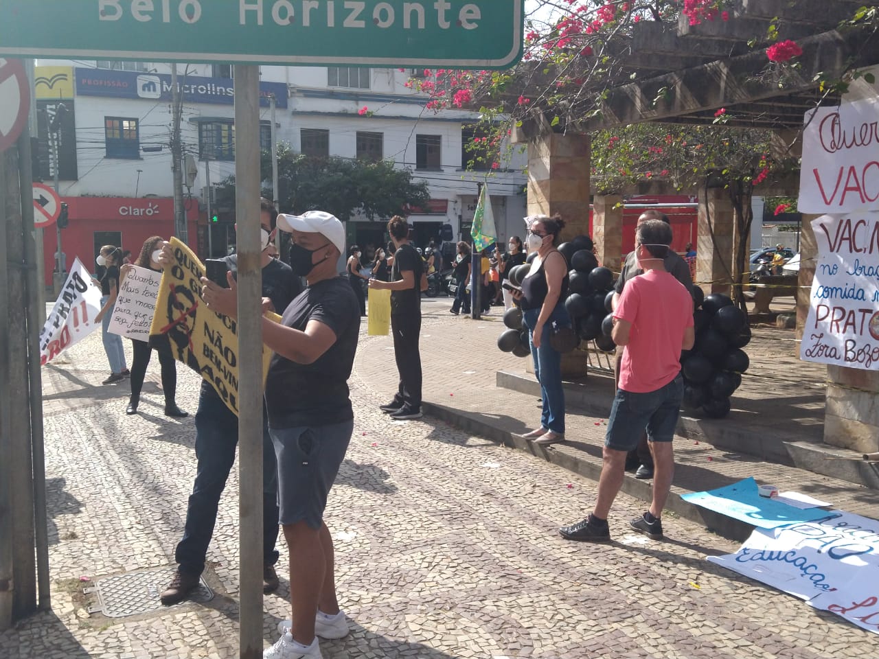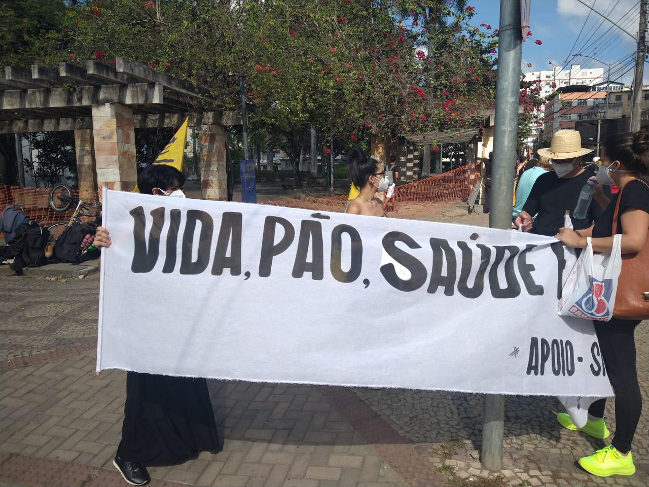 A manifestação ponte-novense, como as outras registradas ao redor do país, traziam cartazes e palavras de ordem como: “fora Bolsonaro genocida”, “o governo é mais perigoso que o vírus”, “comida no prato, vacina no braço”.