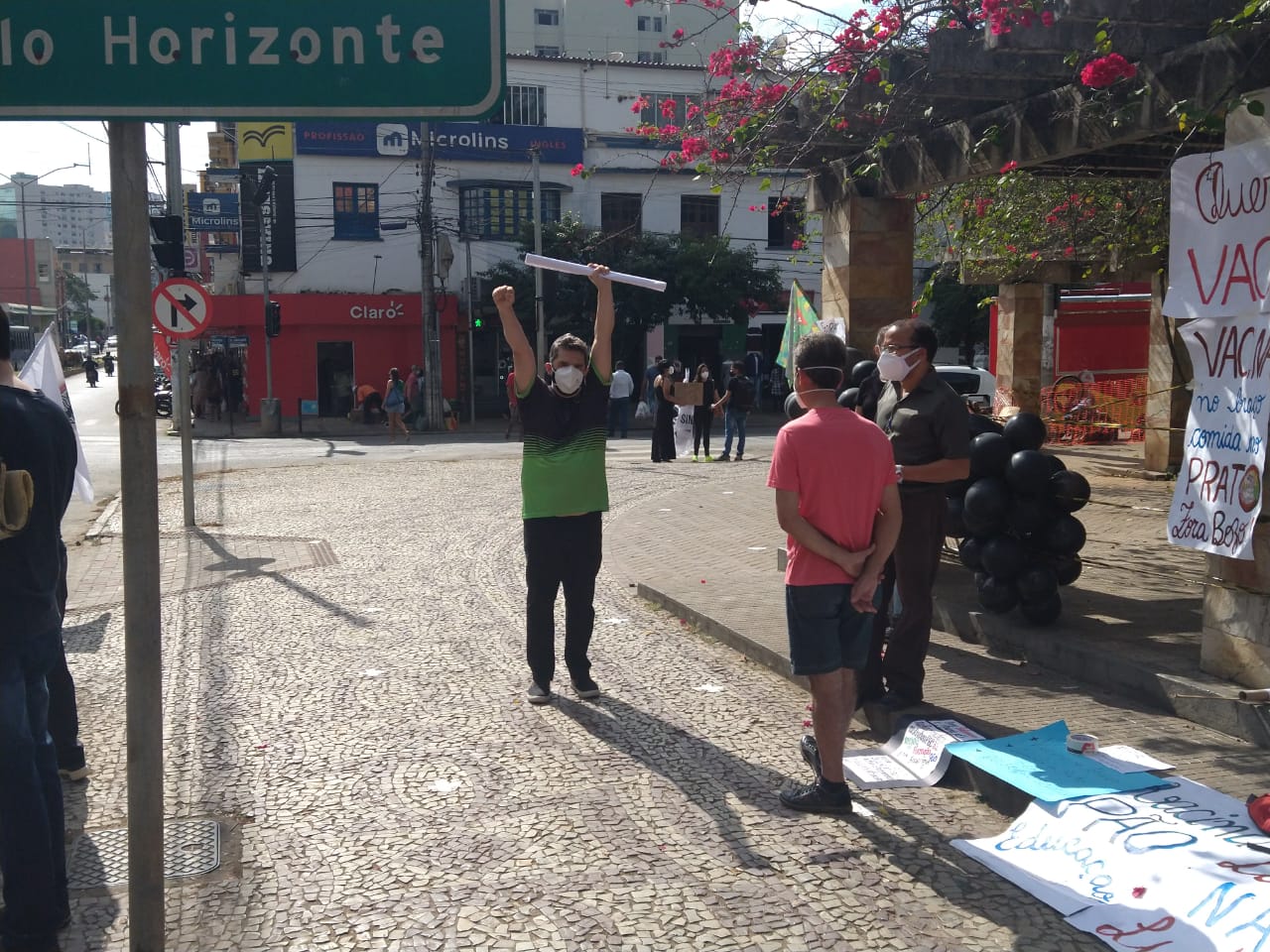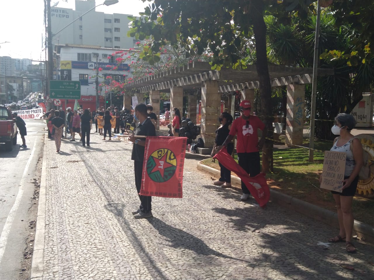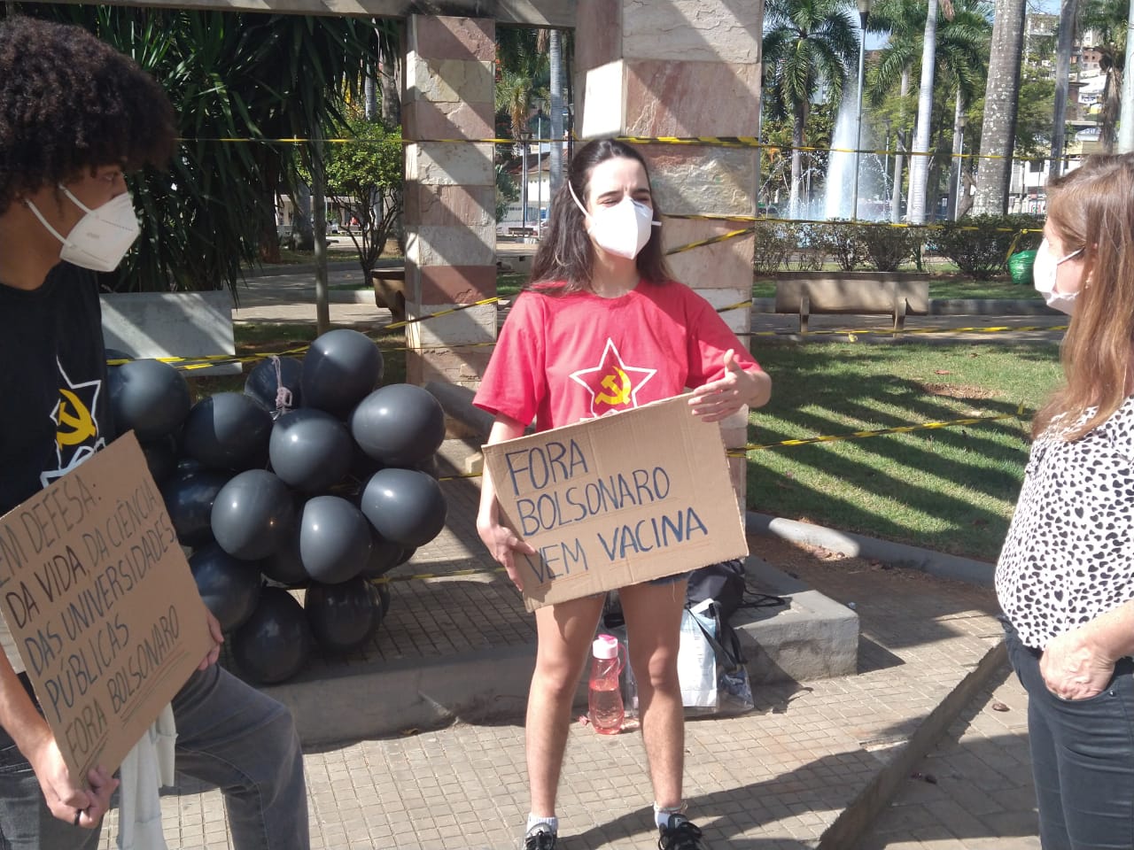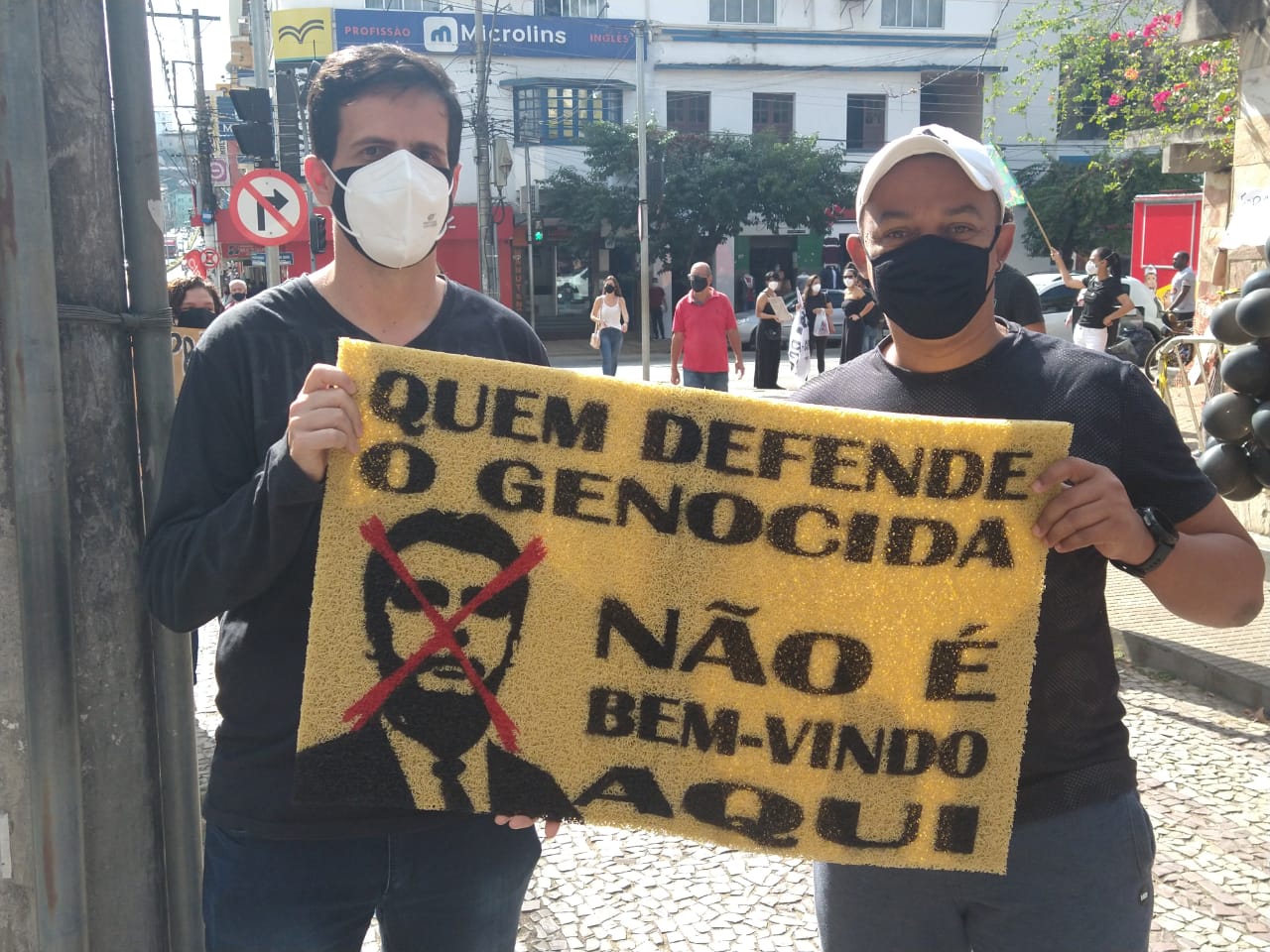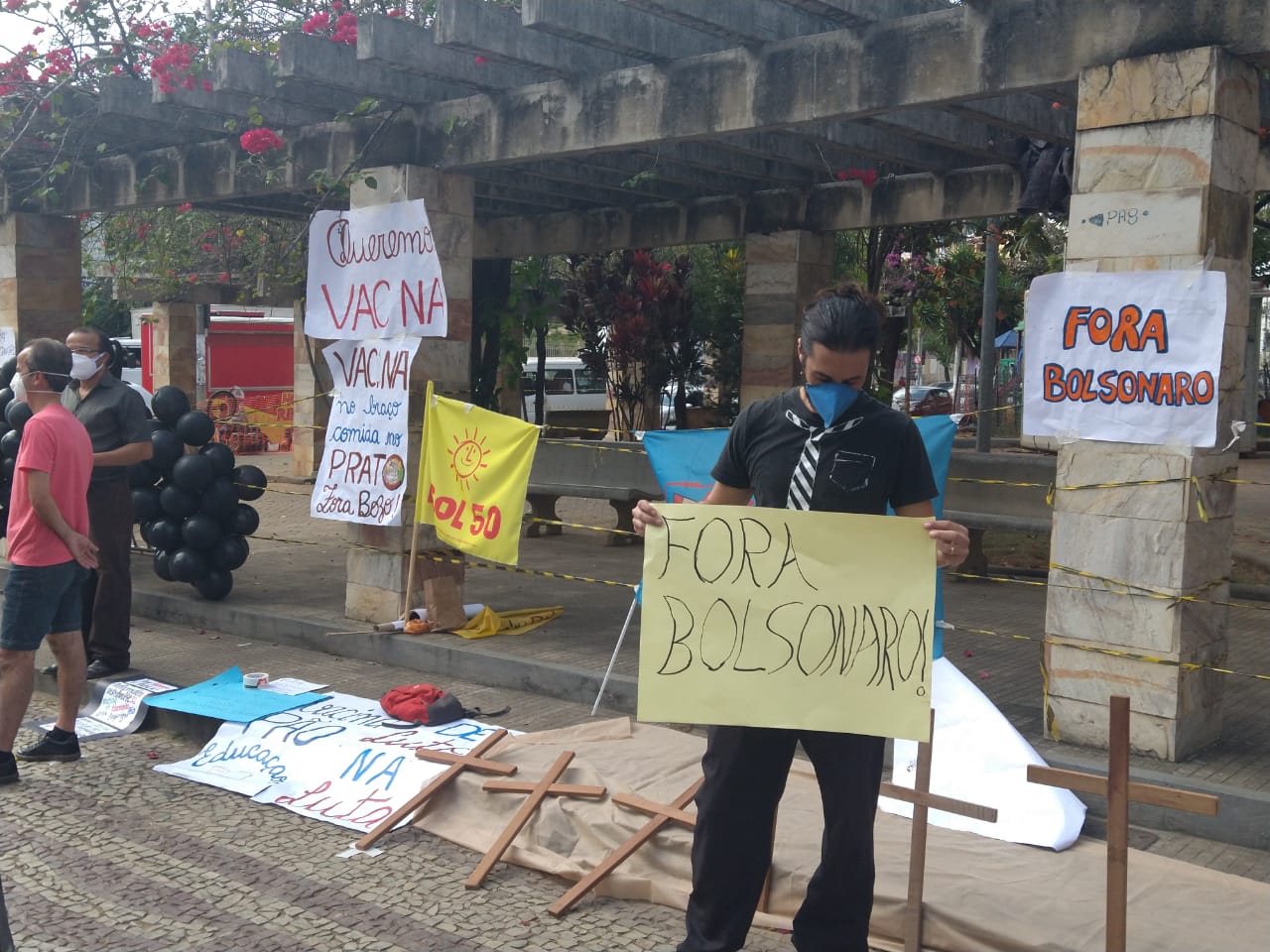 A manifestação ponte-novense, como as outras registradas ao redor do país, traziam cartazes e palavras de ordem como: “fora Bolsonaro genocida”, “o governo é mais perigoso que o vírus”, “comida no prato, vacina no braço”.