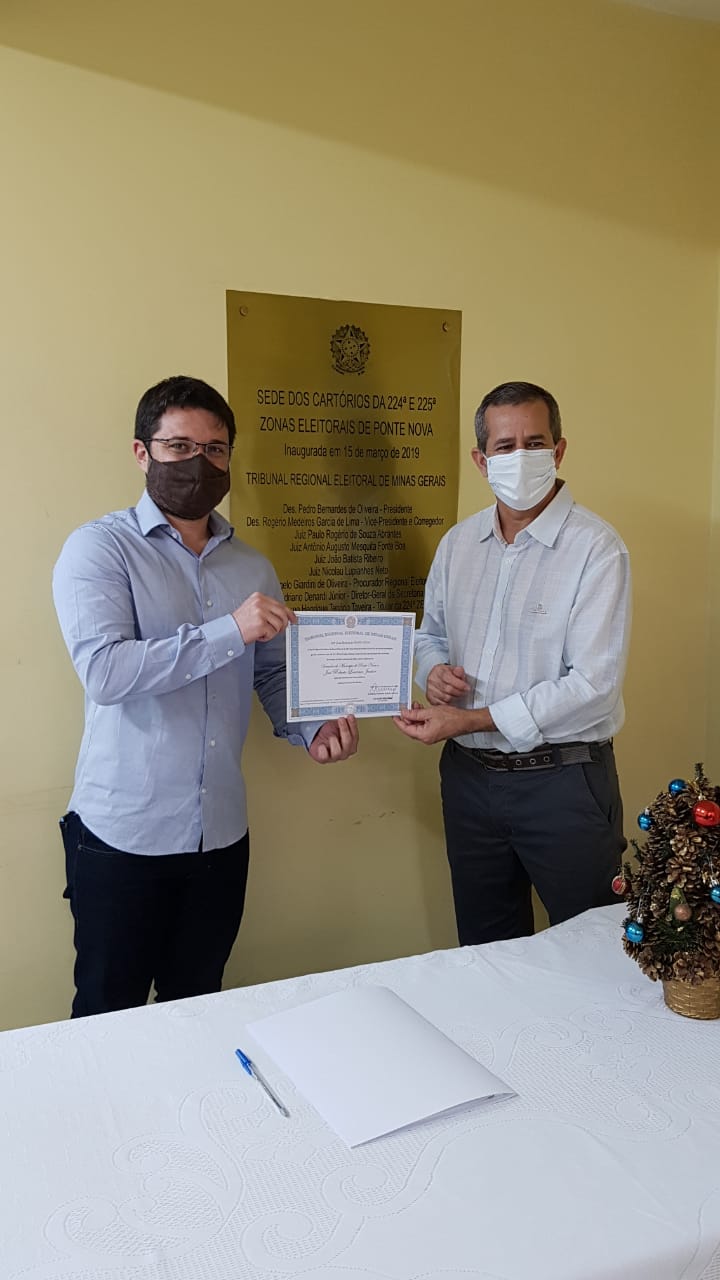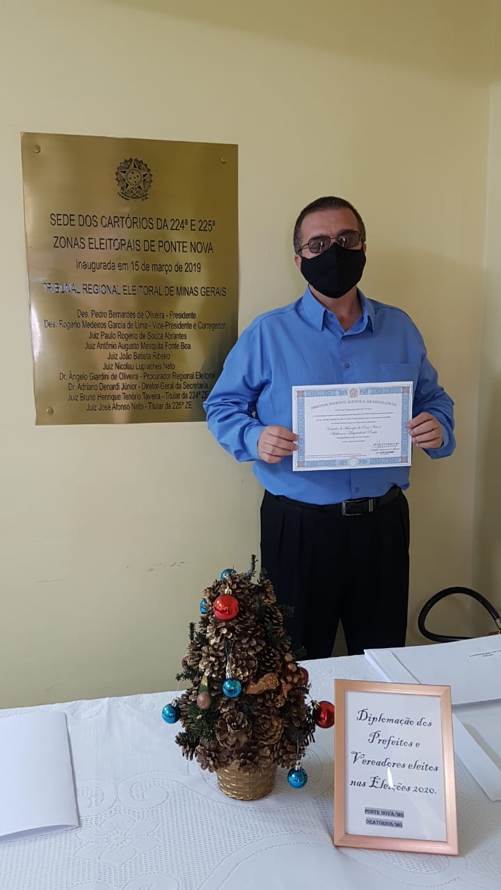 Foram diplomados hoje (17/12), pela manhã, os vencedores das eleições municipais de 2020 em Ponte Nova. Por volta das 9h foi a vez dos candidatos e vencedores do pleito municipal, Wagner Mol e Valéria Alvarenga (Prefeito e Vice Prefeita) receberem o certificado para os cargos , e a partir das 9h15min. até por volta de 12h30min., os candidatos e vencedores para as vagas da Câmara Municipal, os vereadores eleitos.