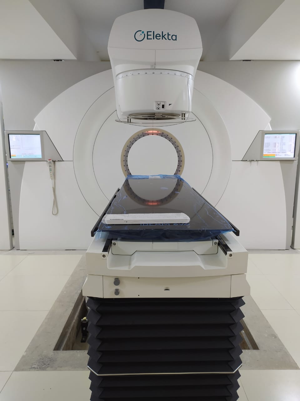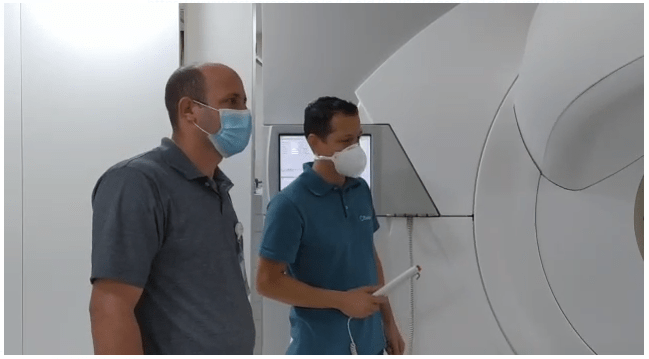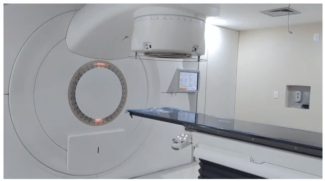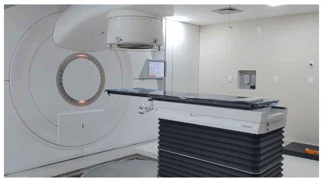 A montagem e preparação do centro está em estágio avançado, e os equipamentos, já dispostos no local, estão recebendo os ajustes finais da empresa especializada contratada para a execução dos serviços (Elekta/empresa fabricante dos aparelhos).
