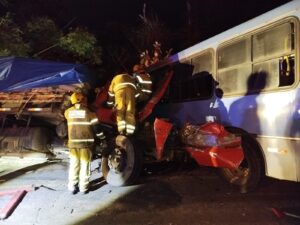 No início da noite de quinta-feira (9), um grave acidente foi registrado na Rodovia MG-262, na saída de Ponte Nova em direção a Belo Horizonte, nas proximidades do radar. Um caminhão, com placas de Cachoeiro de Itapemirim (ES), colidiu contra dois ônibus da empresa São Jorge Autobus. Com o impacto, o condutor do caminhão ficou preso às ferragens e morreu no local. Equipes do Corpo de Bombeiros utilizaram equipamentos especiais para realizar o corte das ferragens e remover o corpo da vítima.