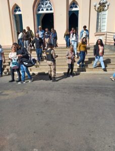 No domingo (3), a Polícia Militar realizou mais uma ação da Operação Agosto Lilás, voltada à prevenção da violência doméstica e familiar contra a mulher em Rio Casca. A iniciativa foi promovida na saída da missa dominical, na Praça Furriel Ângelo, Centro, onde os militares realizaram a distribuição de panfletos informativos, orientando a comunidade sobre os canais de denúncia disponíveis e reforçando a importância do enfrentamento à violência doméstica.