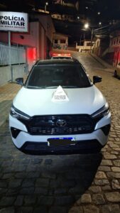 Os militares localizaram o veículo e realizaram a abordagem. Foi confirmada a existência do mandado de prisão e, após vistoria dos sinais identificadores, constatou-se que o automóvel havia sido roubado no Rio de Janeiro/RJ, em dezembro de 2024.  O carro estava clonado com placas de Presidente Prudente/SP. O autor foi preso em flagrante e conduzido, juntamente com o veículo recuperado, à Delegacia de Polícia Civil em Ponte Nova, permanecendo à disposição da justiça