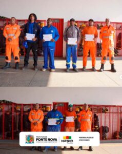 Entre os dias 15 e 23 de maio, servidores municipais participaram do Curso de Formação de Brigada Florestal, promovido pelo 3º Pelotão do Corpo de Bombeiros de Ponte Nova, com o apoio da Defesa Civil Municipal. A capacitação, realizada no CEU das Artes, teve como objetivo preparar os participantes para atuarem no apoio ao Corpo de Bombeiros em situações de combate a incêndios florestais, caso haja necessidade no município.