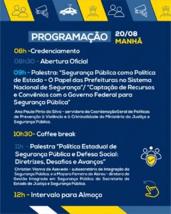 Com apoio do Ministério da Justiça, SEJUSP-MG, Polícias Militar, Civil, Penal, Corpo de Bombeiros, Defesa Civil e UNIFAGOC, o seminário tem como objetivo fortalecer a integração entre os entes federativos e qualificar os agentes envolvidos na segurança das cidades.